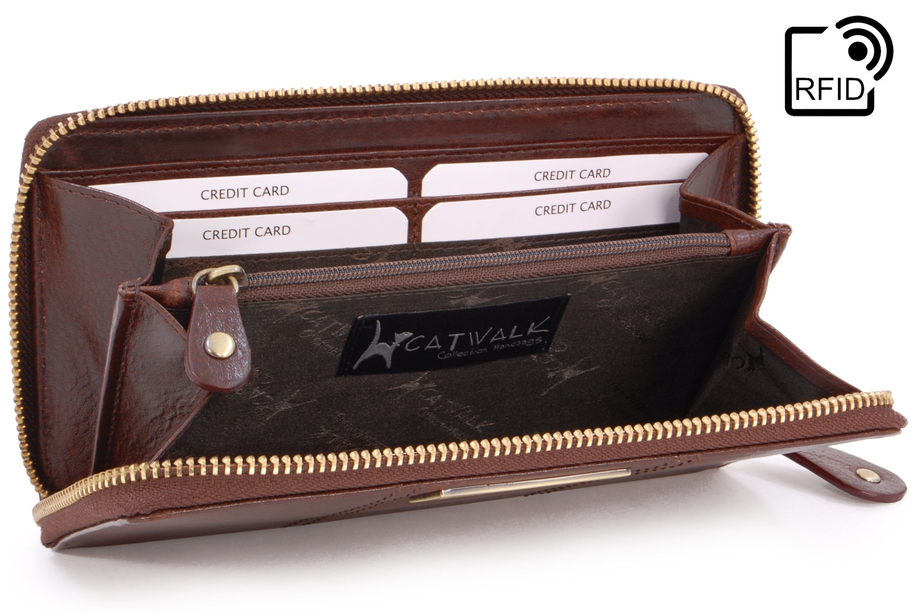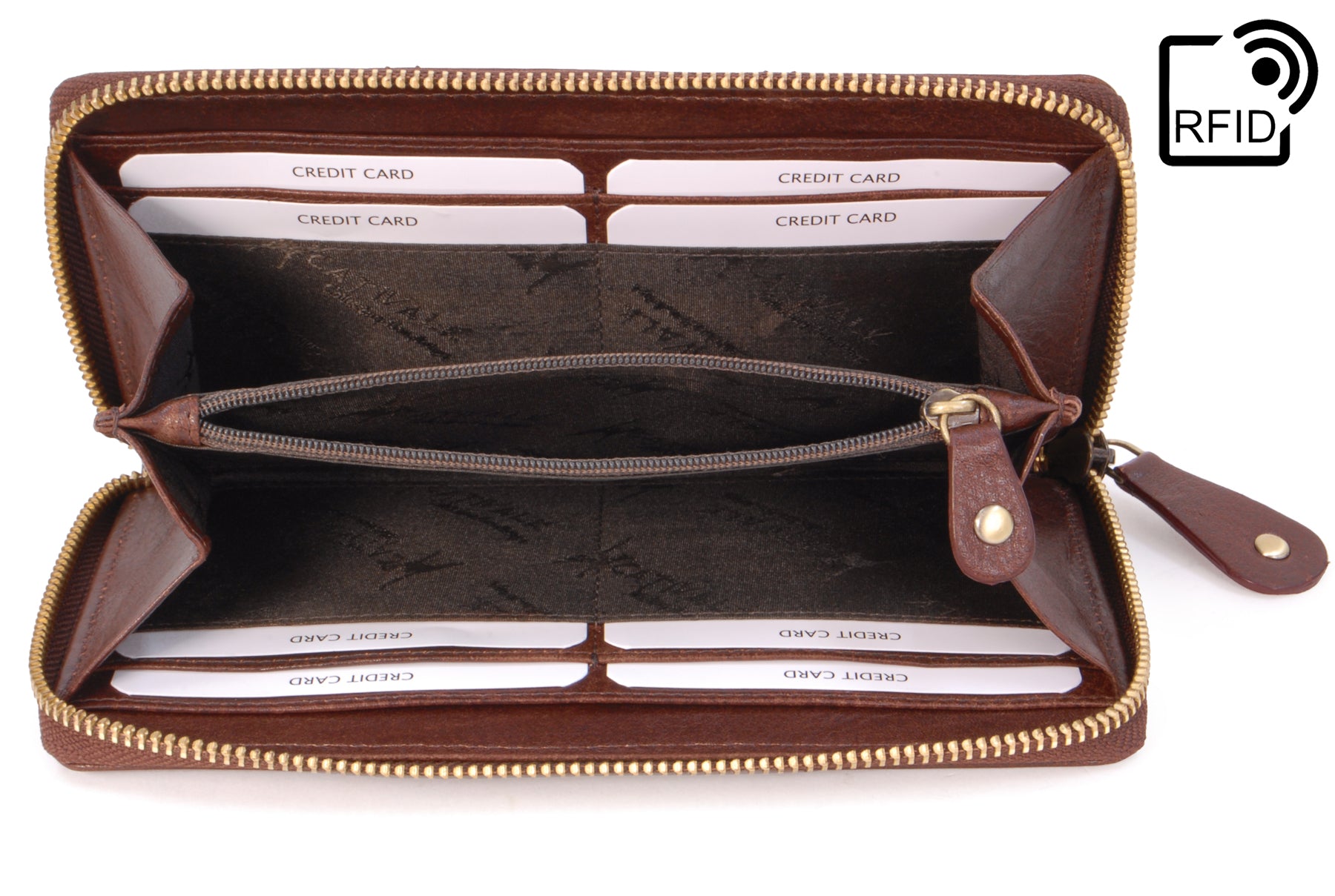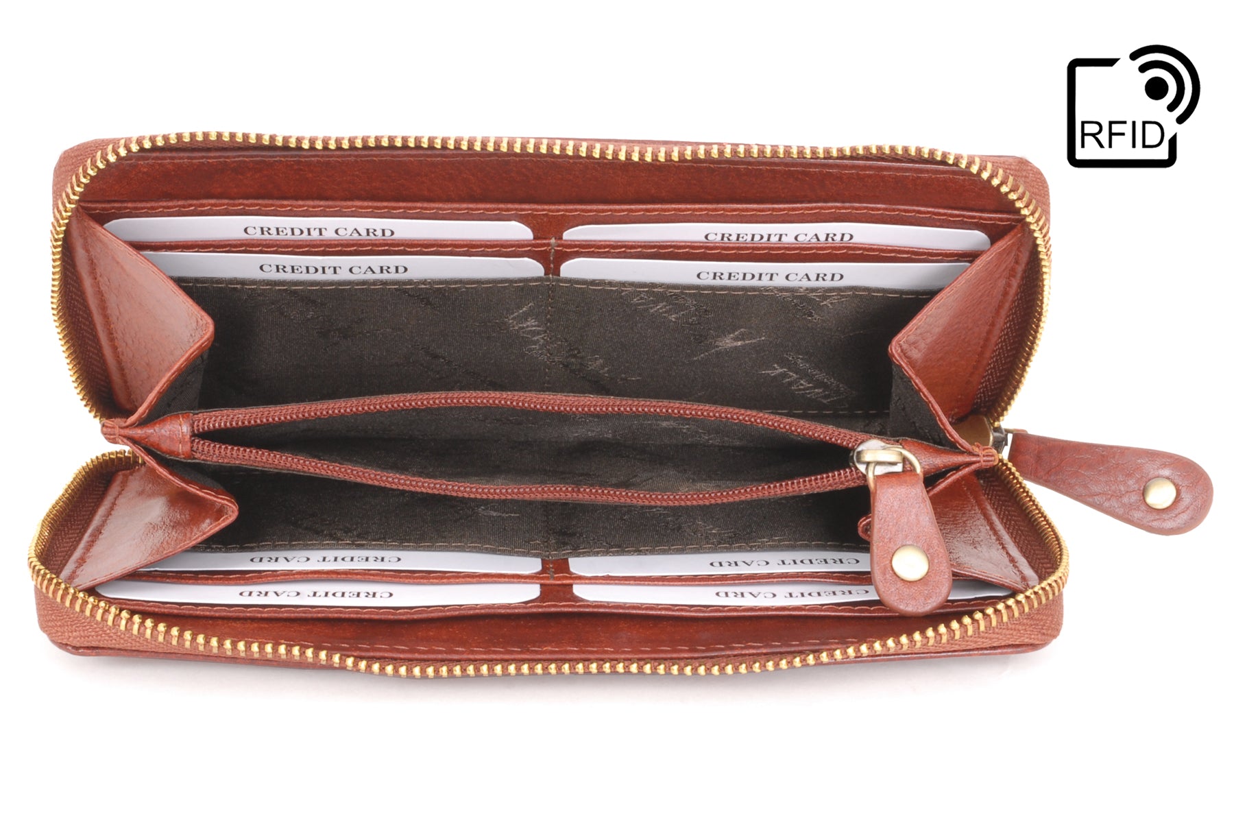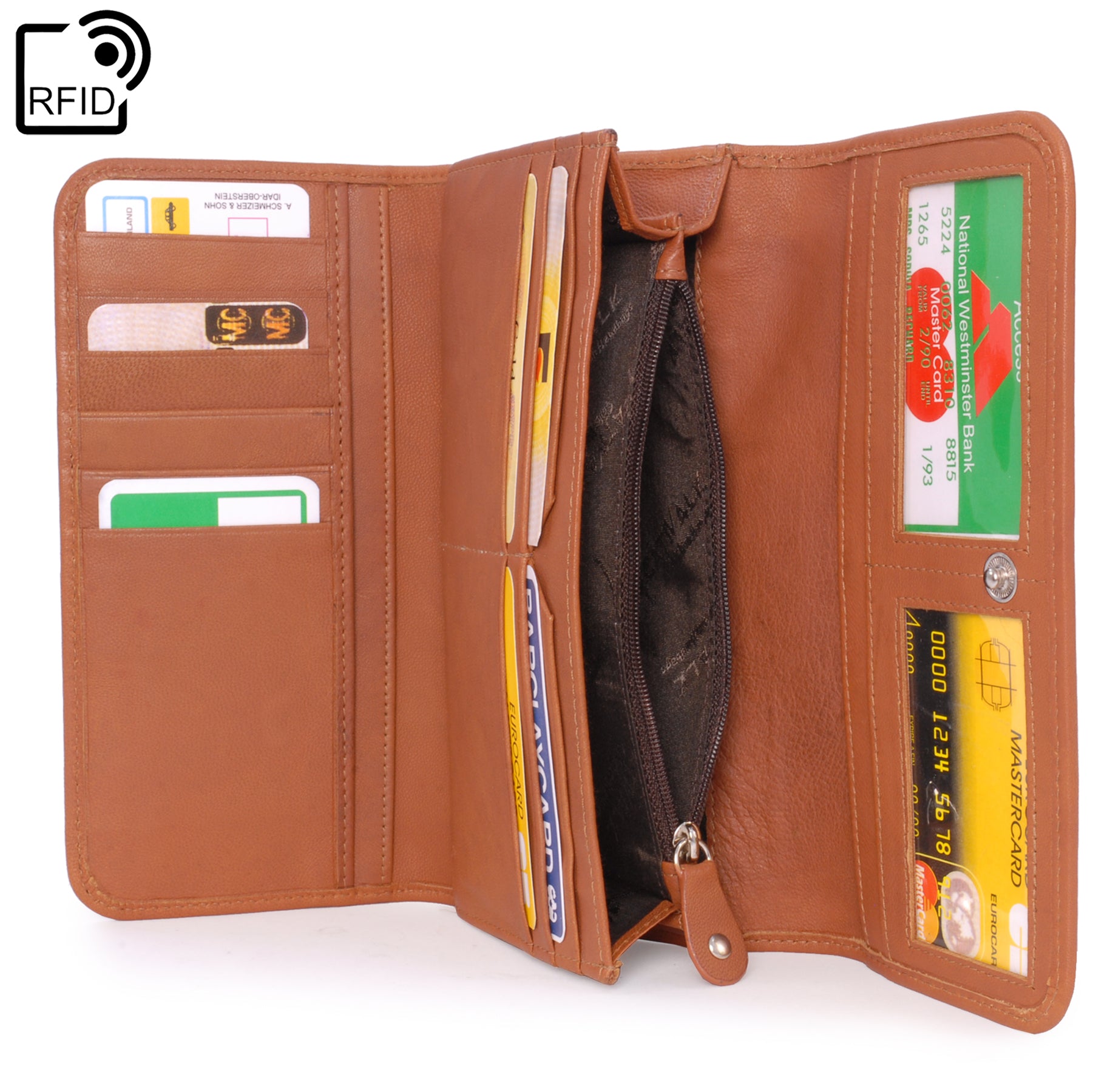 Keep your money safe in our stylish collection of women's purses. All of our purses and wallets feature RFID protection as standard. Choose from colourful coin pouches, zip round purses, to large organiser purses with a phone pocket.