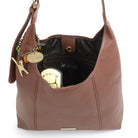 A soft, slouchy leather shoulder bag with a fashionable crescent-shaped hobo silhouette, the ‘Bethany’ handbag offers effortless style and everyday practicality. The angled double piping on the front provides subtle, sophisticated detailing, adding an elegant touch to its relaxed design.