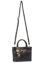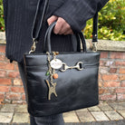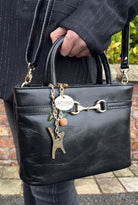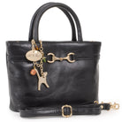 A gold-coloured horse bit fitting with belted detailing on the front adds a chic, sophisticated accent. Double handles are elegantly rolled for a comfortable hand carry. A detachable, adjustable crossbody strap provides a hands-free option and a personalised fit.