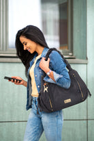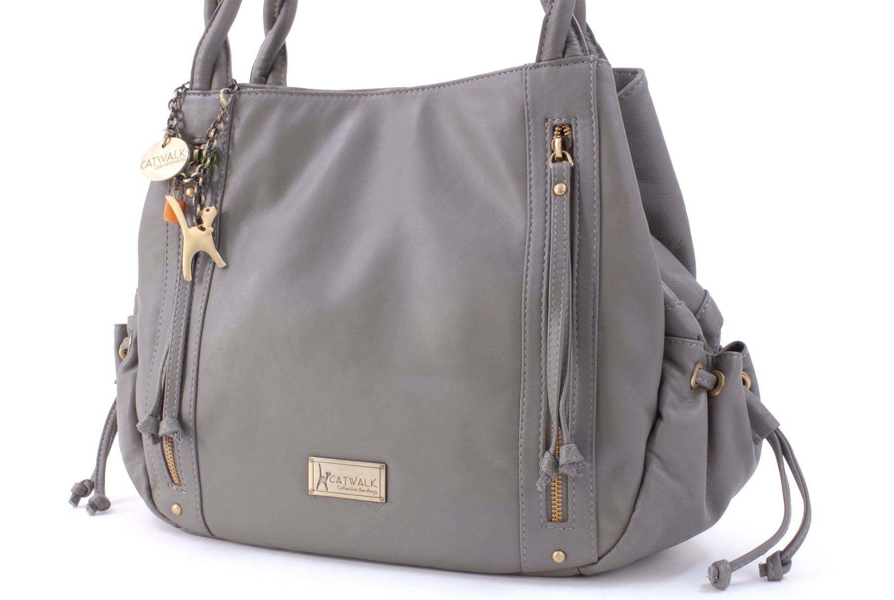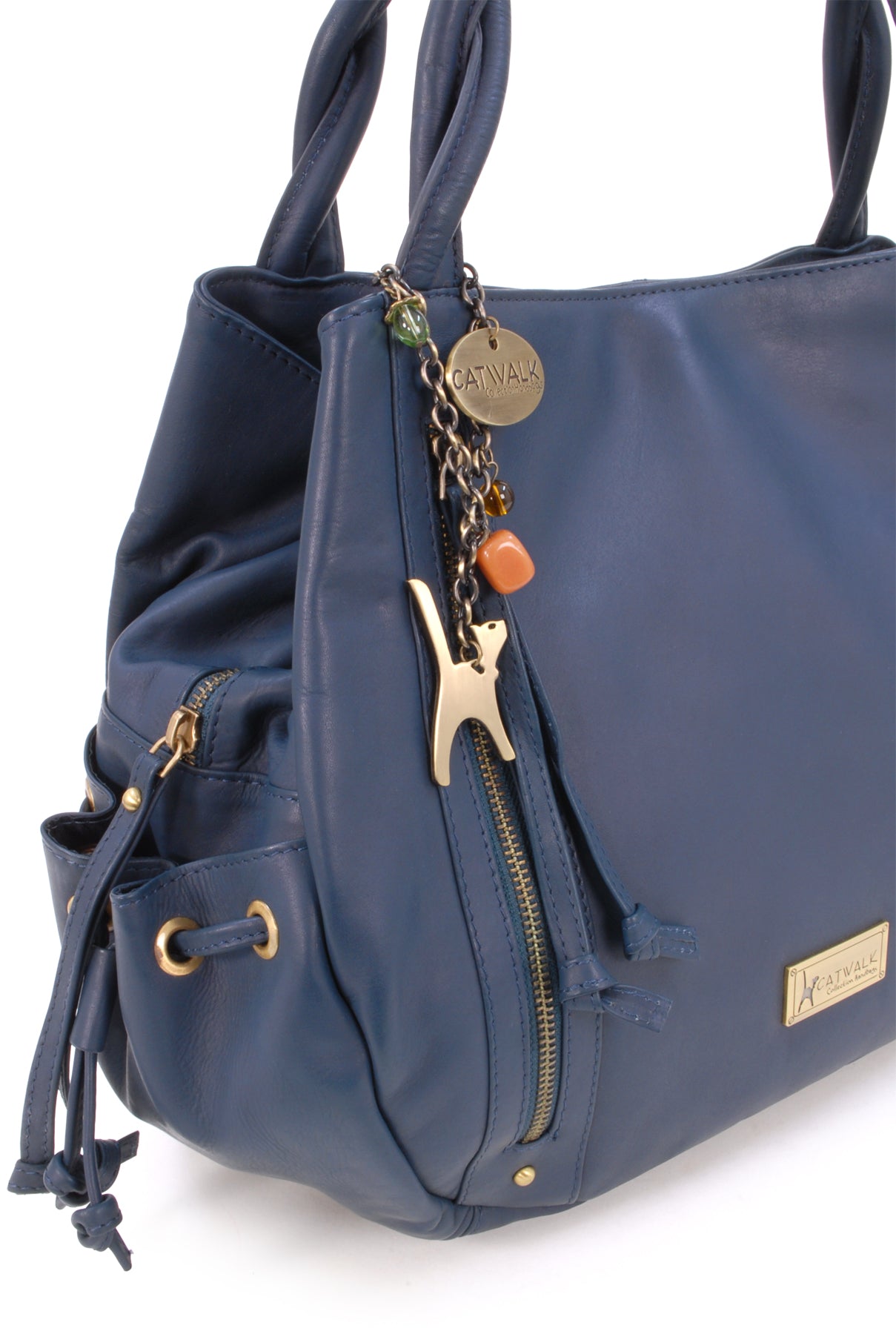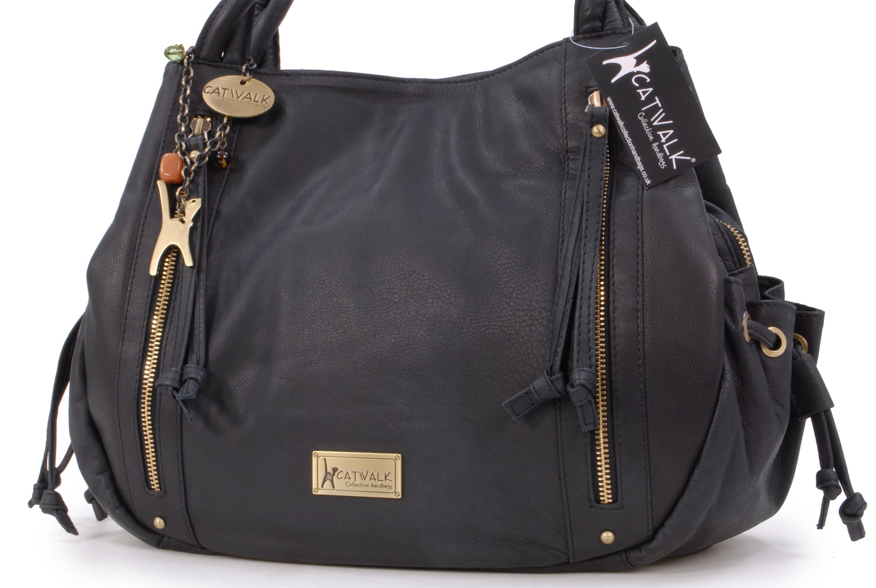 Designed to be worn on the shoulder and hugged into the body and with strong, secure antique-brass metal zip fastening, the Caz tote bag is also very street-wise.