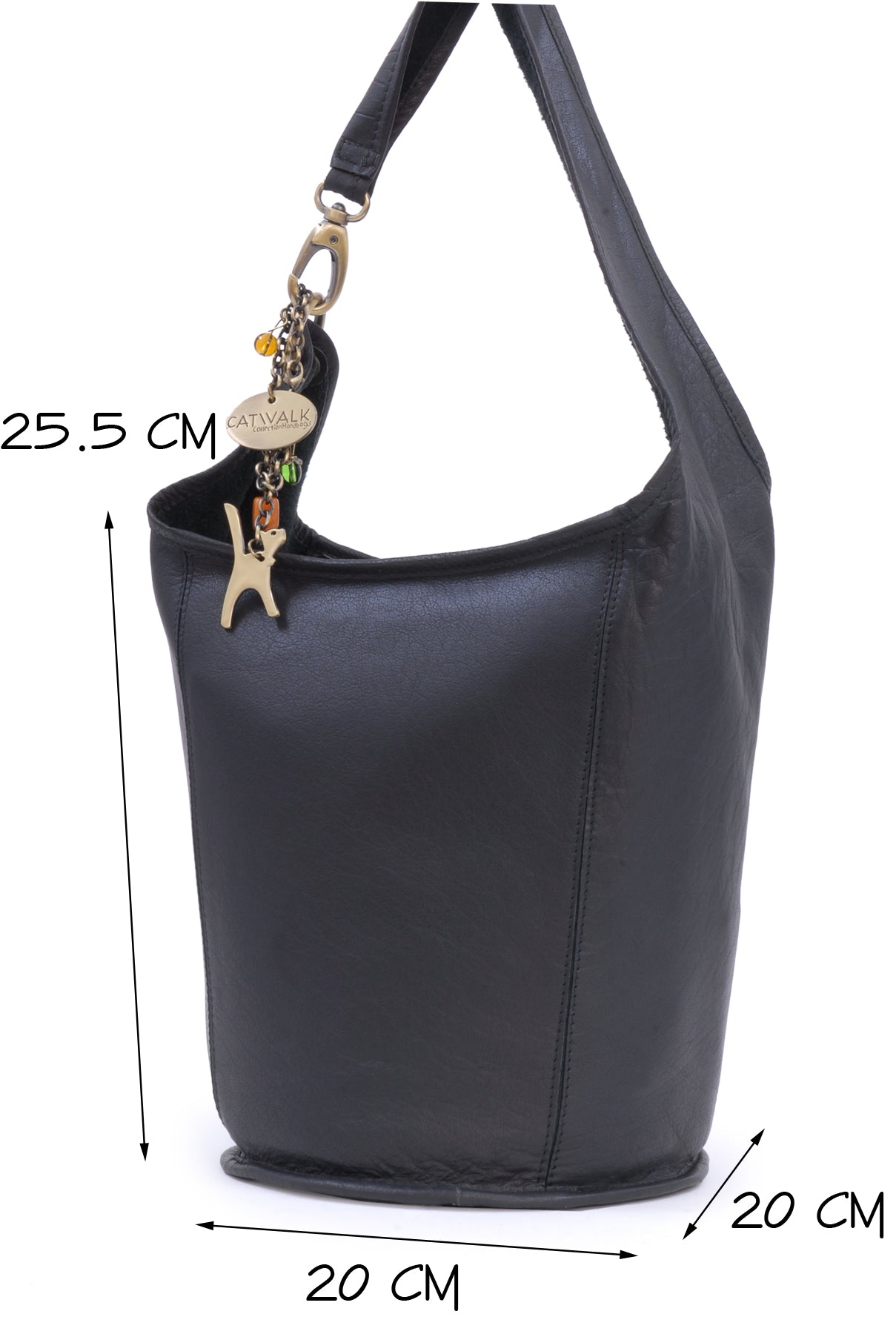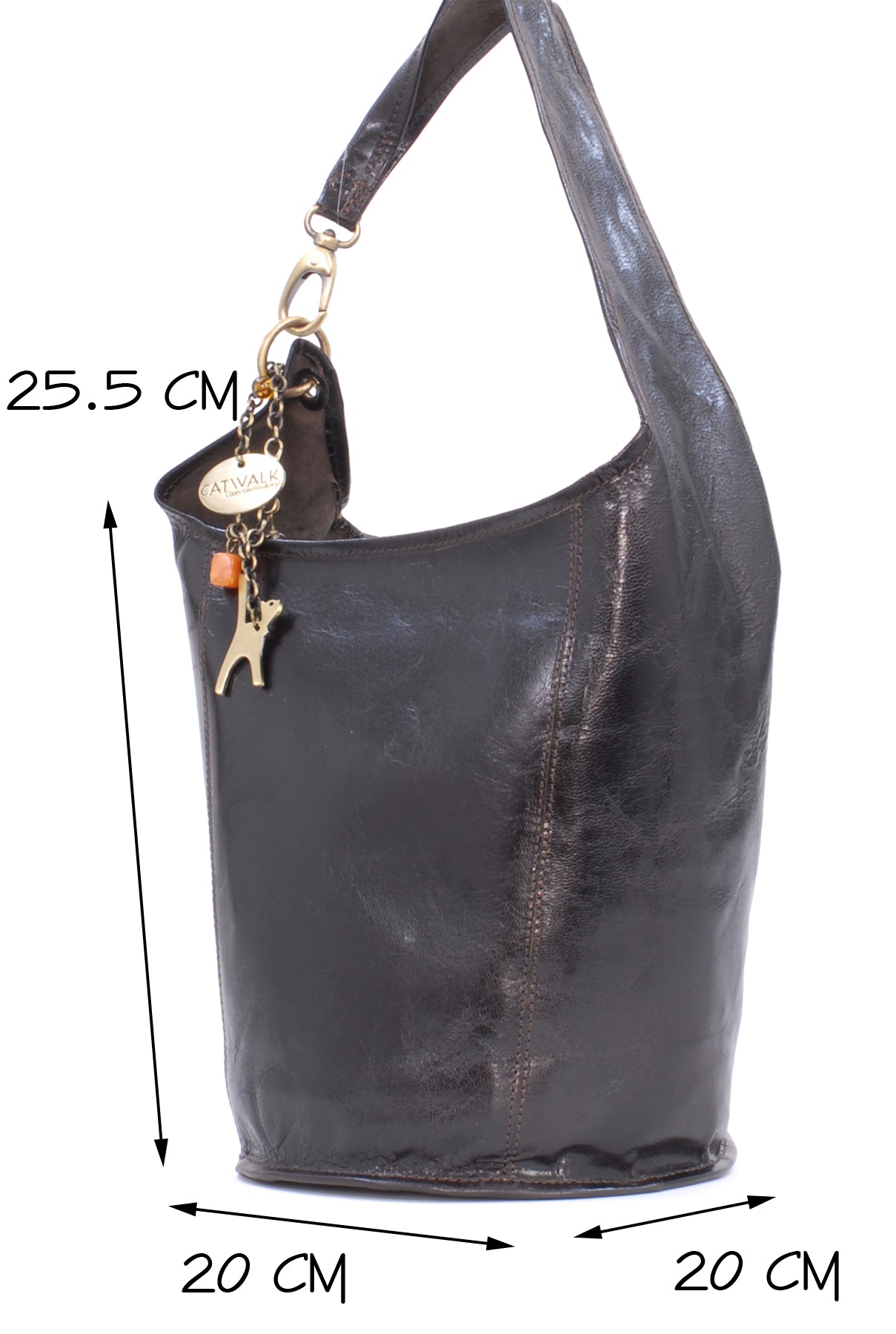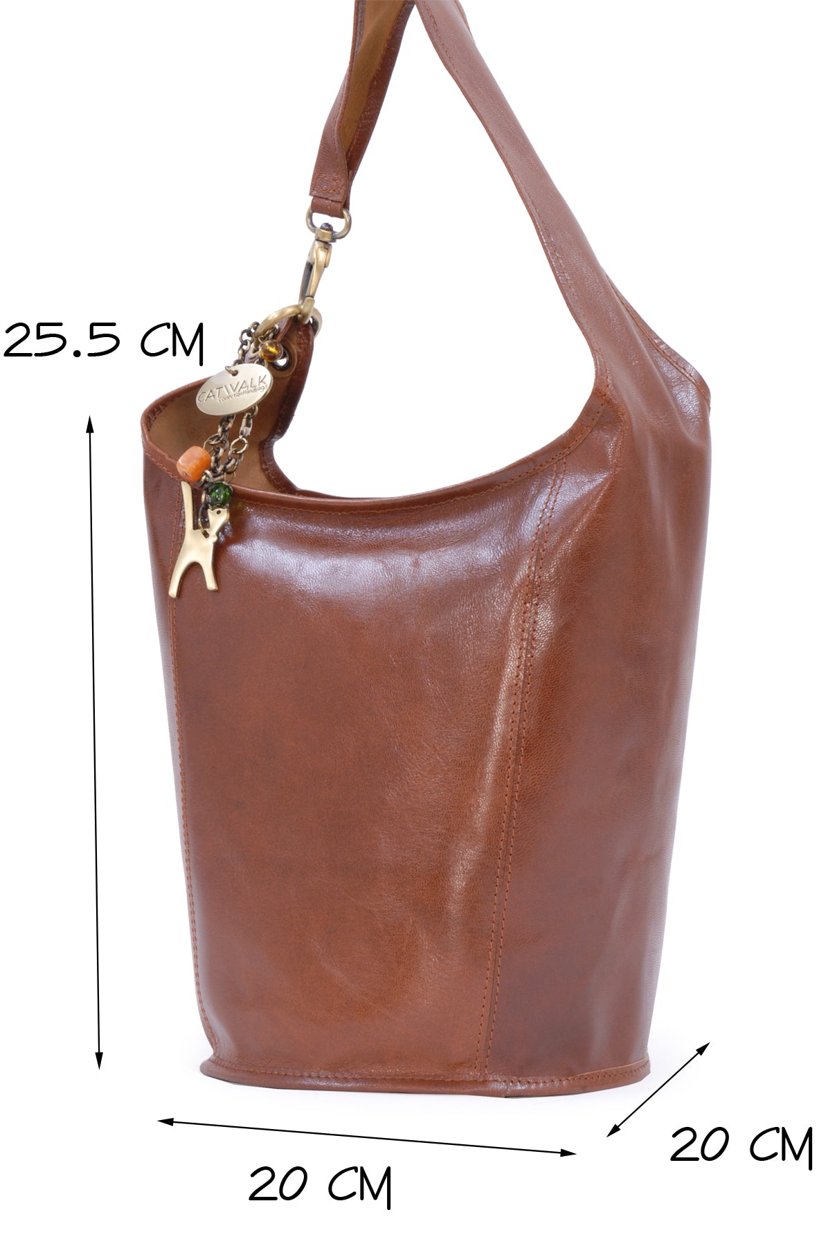 This is a mid-sized bag with excellent capacity; great for pocket diary, purse, make-up case and umpteen other handbag essentials. The bucket shape design means you can pack this bag full of stuff and still have room for more.