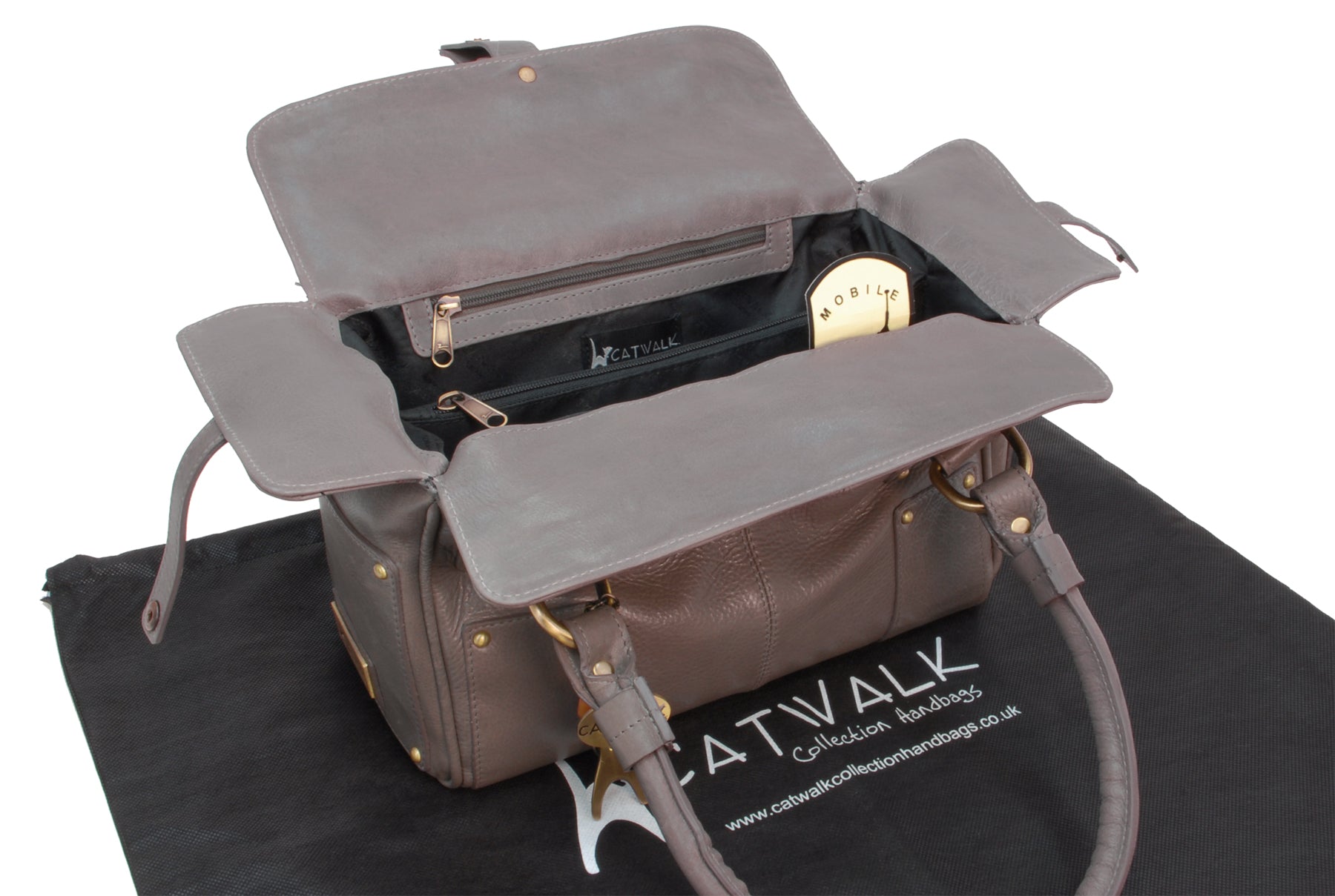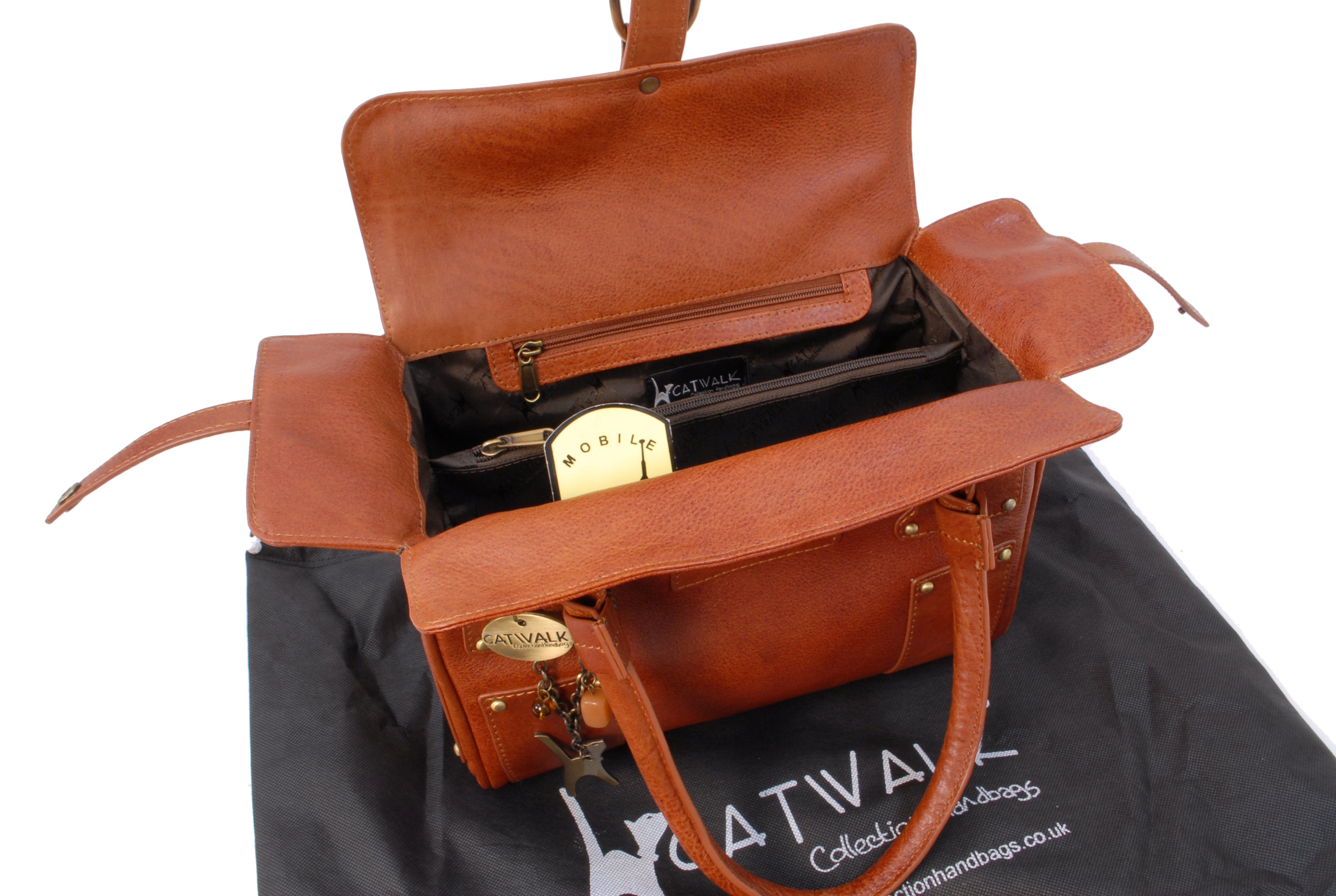 This is a stunning handbag featuring chunky antique brass metal fittings and solid studs; a cool designer touch which gives the bag a fashionable appeal that simply exudes street cred.