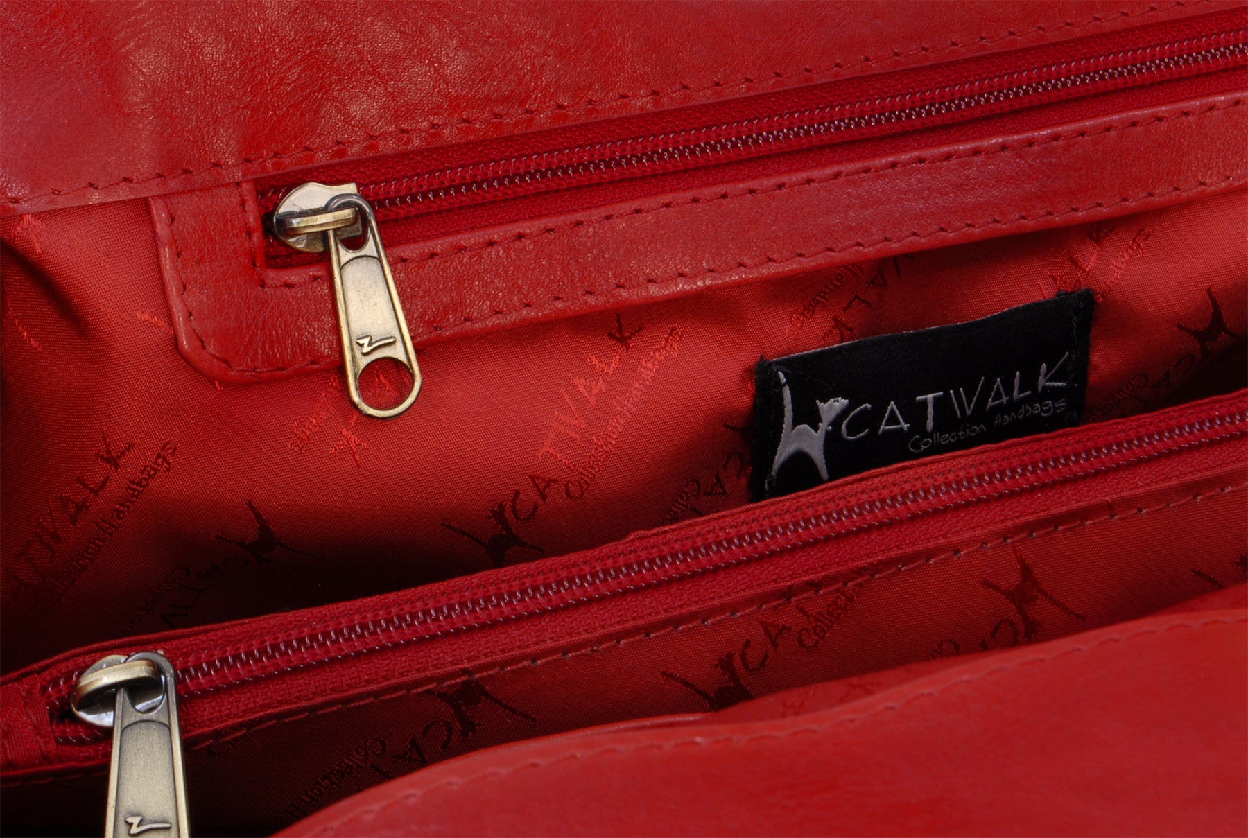 Pockets: 2 Main Compartments + 1 Central Zipped Pocket + 1 Interior Side Zipped Pocket + 1 Leather topped Mobile Phone Holder + 1 Leather topped Interior Open Pocket