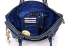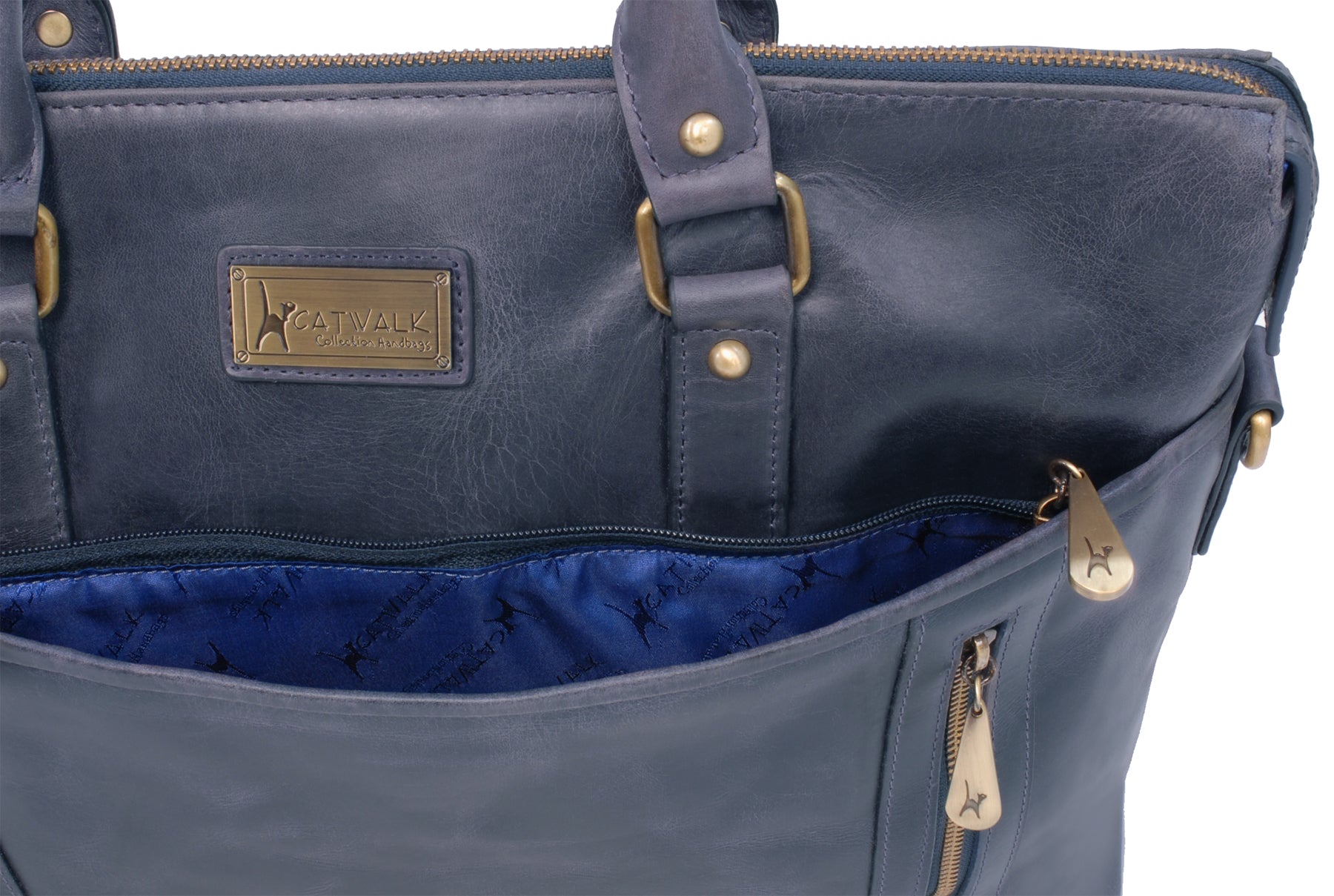 Double handles are elegantly rolled. The bag can be stylishly hand-held or hooked over the lower arm. An adjustable, detachable leather strap enables the bag to be worn over-the-shoulder or hands-free across-the-body.