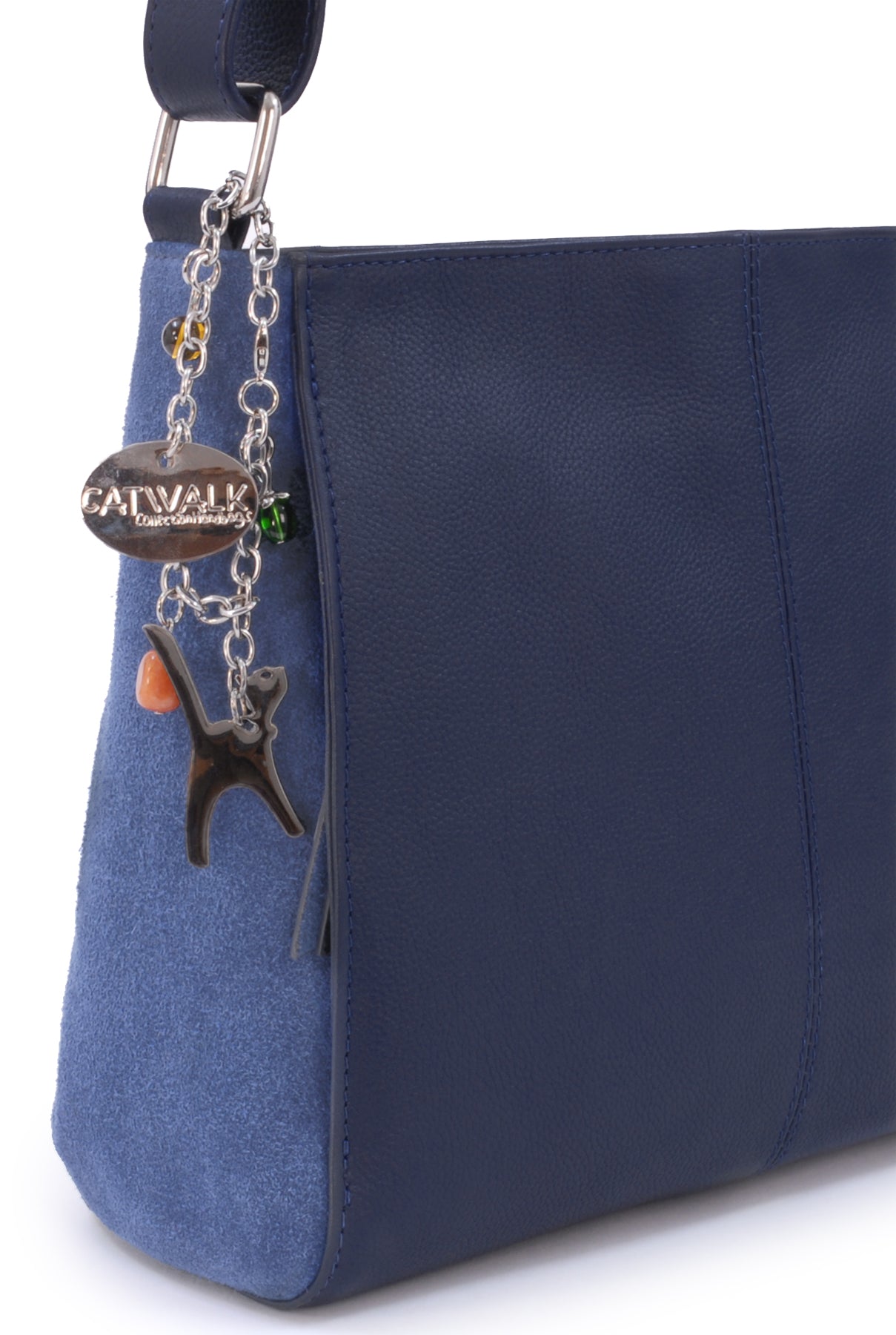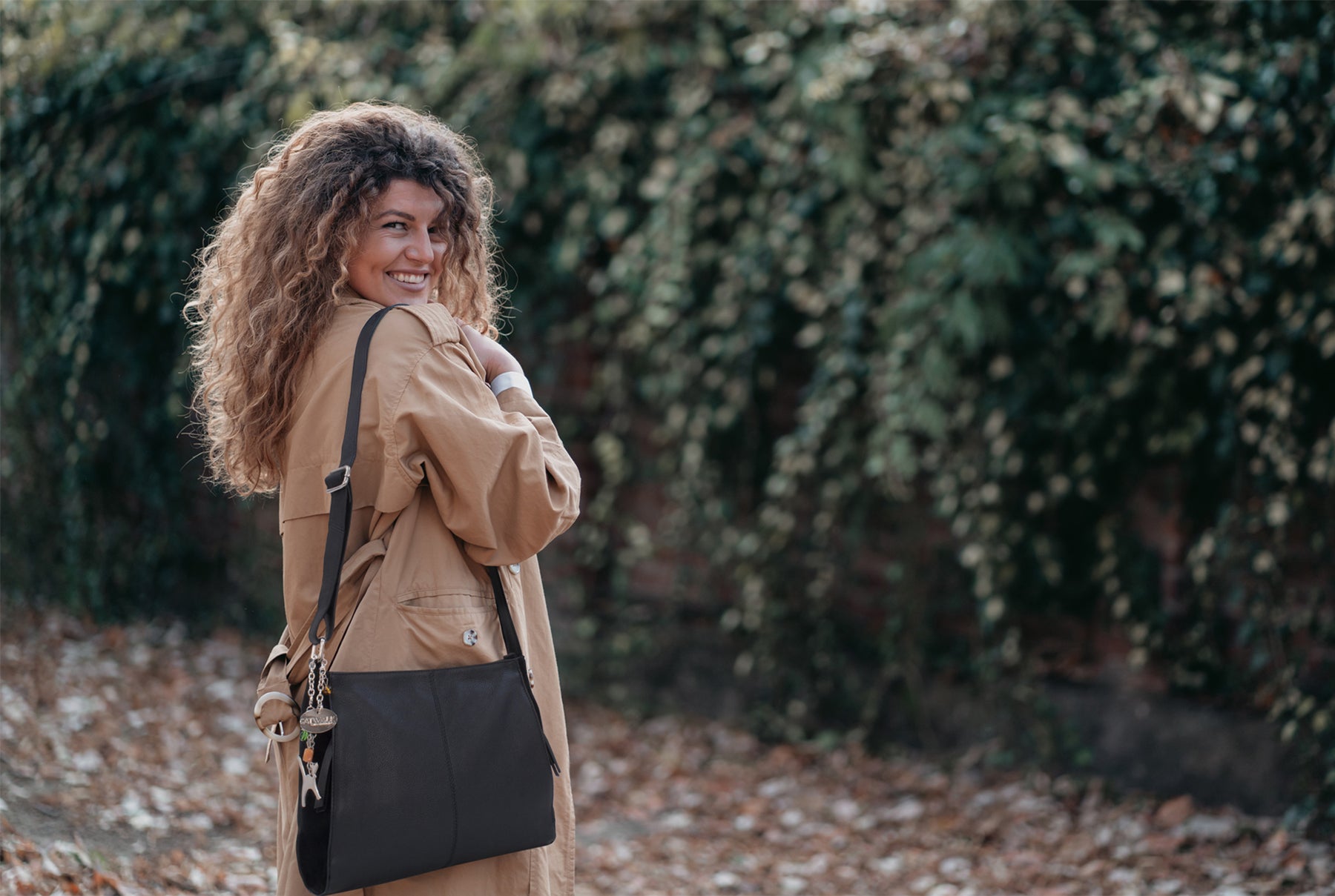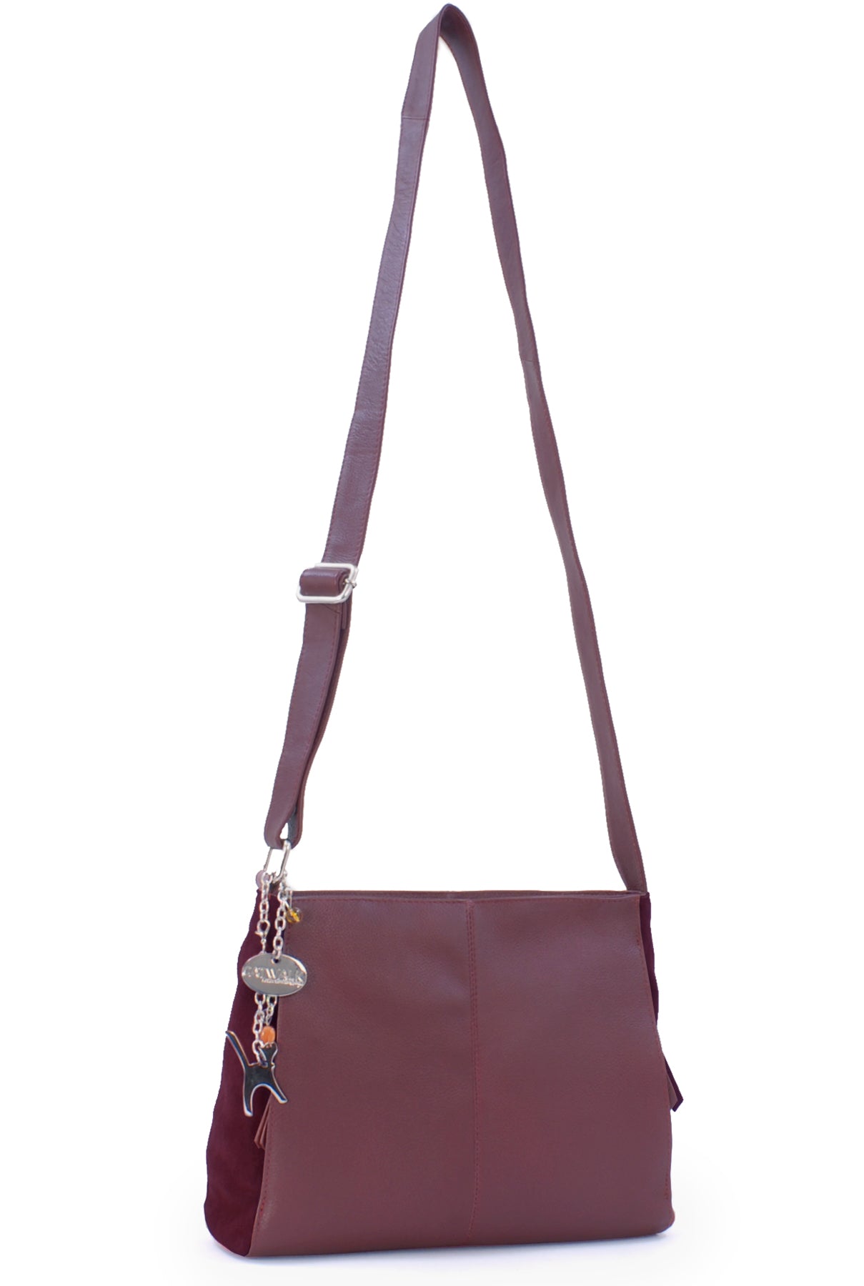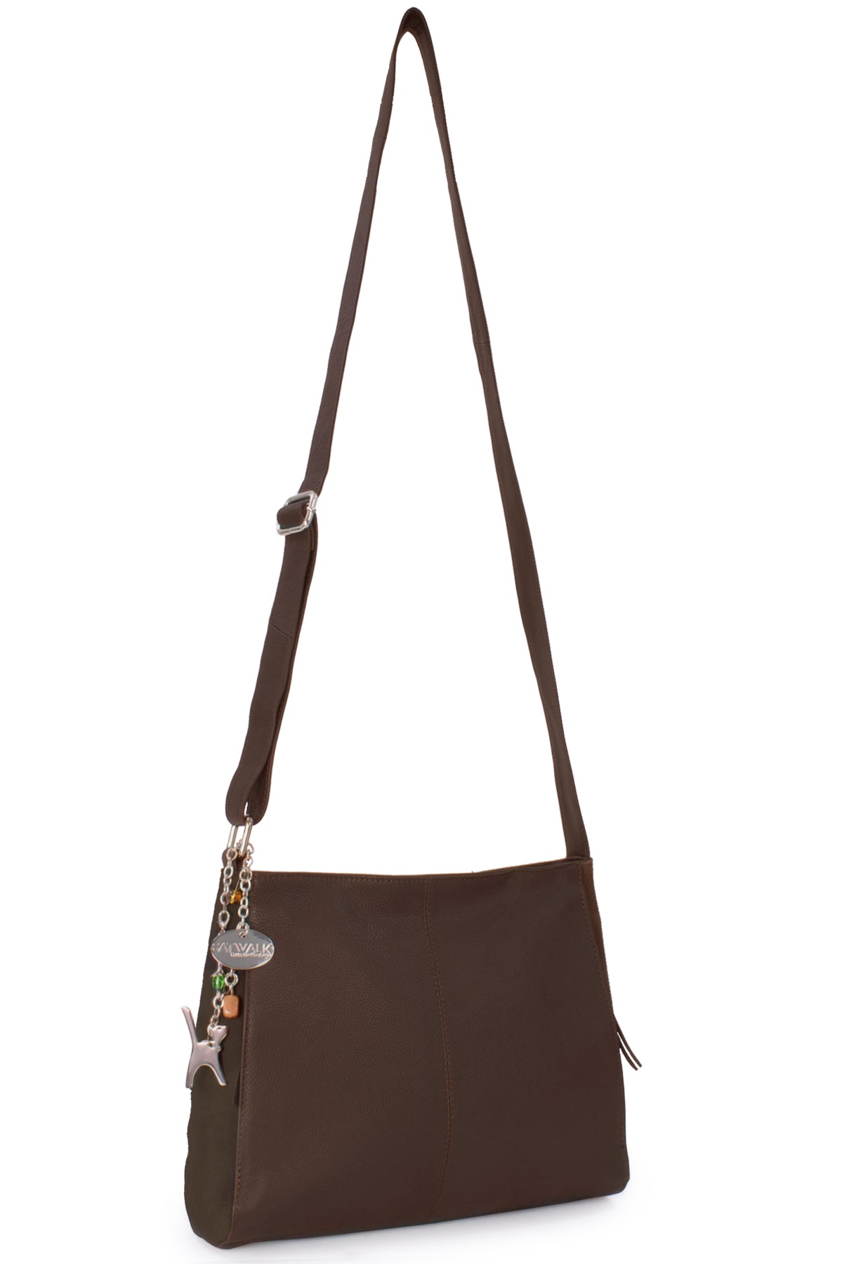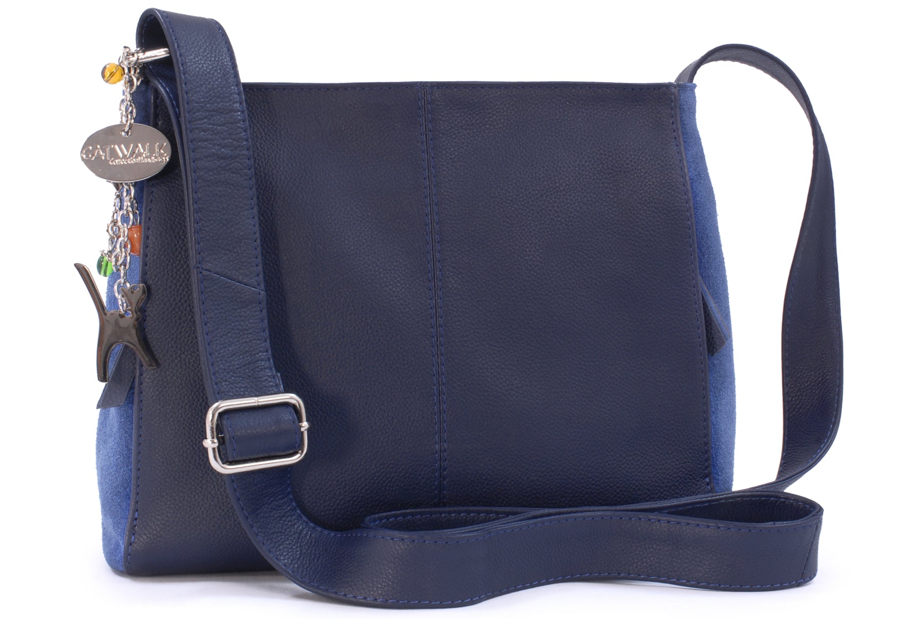 An adjustable leather strap enables the bag to be worn over-the-shoulder or hands-free across-the-body.